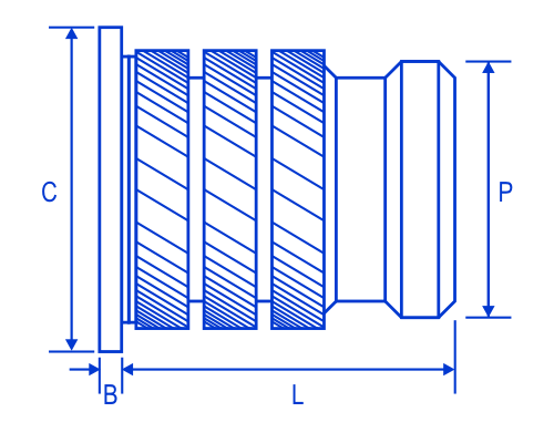 The FSUK MU range is designed with multiple helically knurled rings designed to be installed into hard brittle Thermosetting Plastics. These inserts are often used in the Electrical industry. It's designed to be installed cold into drilled or moulded holes. The sharp knurls allows high performance in thinner boses.