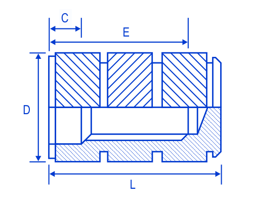 The FSUK BLD range is a blind insert designed for moulding in rather than post insertion. The opposing herringbone knurl gives a very high level of performance.